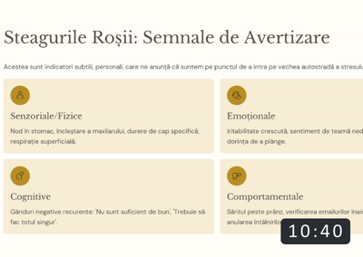 Cursul te ajută să recunoști semnalele de alarmă înainte ca sistemul tău nervos să intre în colaps, oferindu-ți instrumentele neurobiologice necesare pentru a-ți reconstrui sănătatea și a recâștiga controlul asupra propriei vieți.